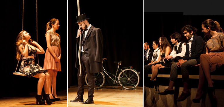 La struttura dello spettacolo è quella di un labirinto in cui si passa attraverso una storia e ci si ritrova in altre storie, incatenate l’una all’altra come anelli di una catena in un espediente narrativo che è del “teatro nel teatro” ed è presentato a volte in forma continua, a volte rapsodica, costellato di poesie e canti, a costituire un unico arazzo che vuole essere un fiducioso canto alla vita.